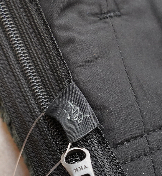 本体の POLARTEC HIGH LOFT はその名の通り、毛足の長いフリースによる優れた保温性があります。格子状に起毛を短 くすることで軽さを提供し、保温性を確保しながらも汗や蒸れ感を排出する高い通気性も備えています。 腹部の帝人 MINOTECH マットタフタは光沢を抑えた自然な風合いでありながら、植物の葉の撥水性をヒントにした独特 の織り構造によって優れた撥水性があり、適度な防風性と通気性を備えています。