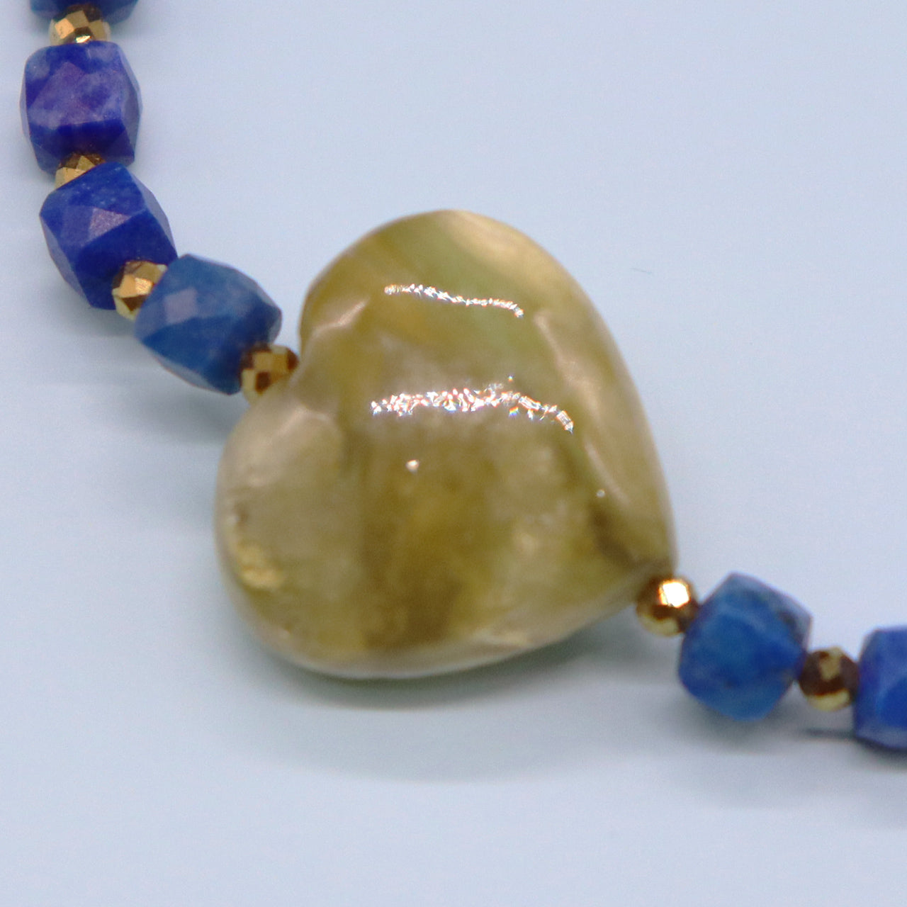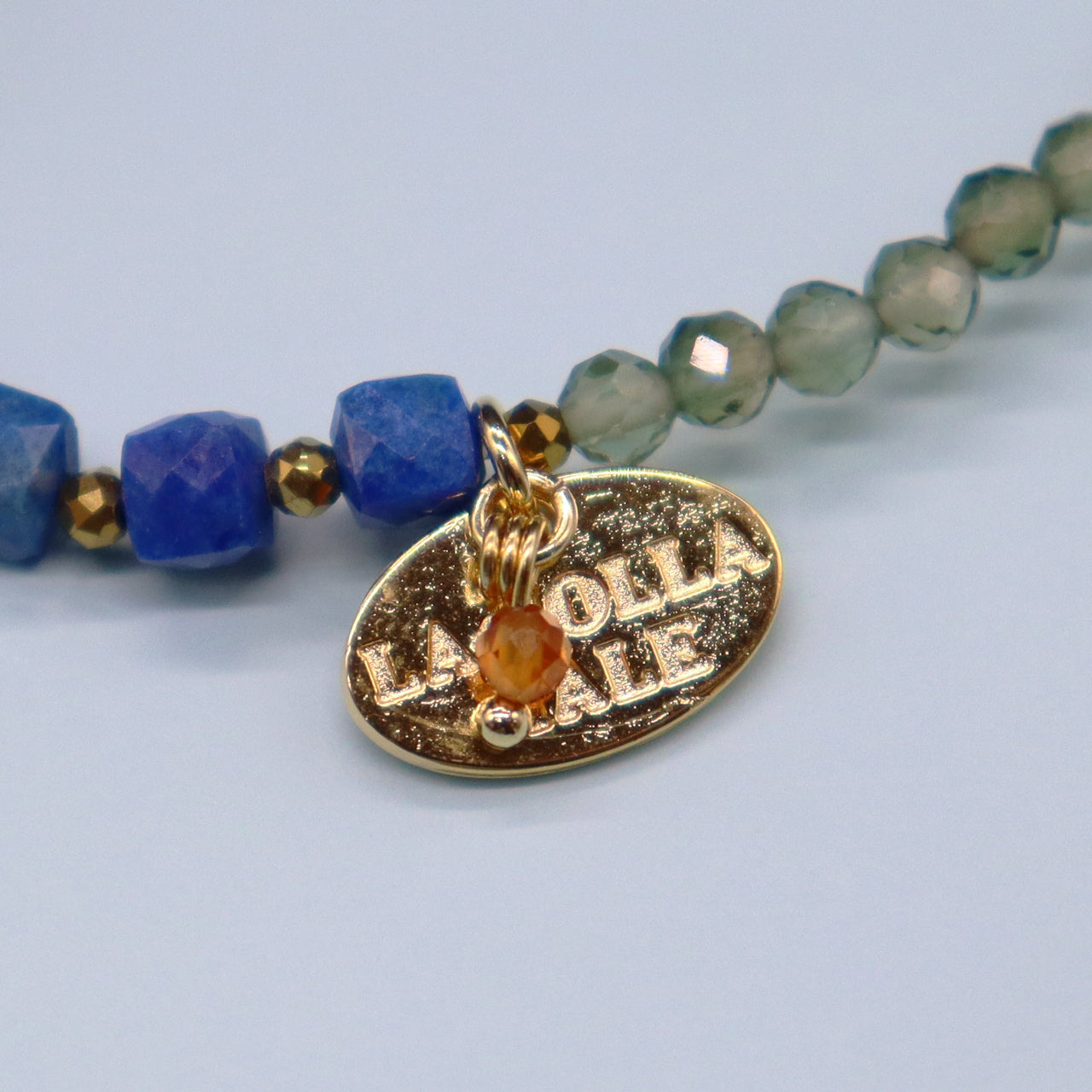 9月誕生石。深く鮮やかな群青に、金色が星の様に散りばめられた夜空を思わせる神秘的な宝石「ラピスラズリ」は、幸運を呼ぶ石として知られています。古来より美しさと力を兼ね備えた石として愛され続けるラピスラズリは、世界で最も古いパワーストーンのひとつと言われています。深い青を「夜空」金色を「星」として 、天空のように青く美しい特徴的な姿から、「天空を象徴する聖なる石」として人々を魅了してきました。また、古代エジプトでは黄金に匹敵する価値のある、最高の力を秘めた護符として、王族の装飾品としても用いられていました。ラピスラズリは、持つ人の潜在的な問題を顕在化させ、その問題を解決する事から本質的に幸せに導くと言われています。また、人生において自分が進むべき本道に気づかせてくれる、カリスマ性を高める力を持つと言われています。