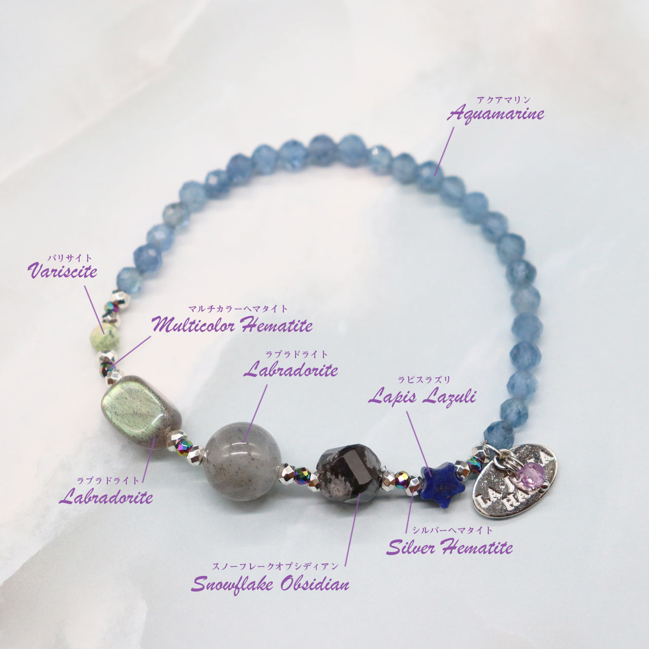 【Starry Sky Fragment】ラピスラズリ×アクアマリン×ラブラドライト ブレスレット