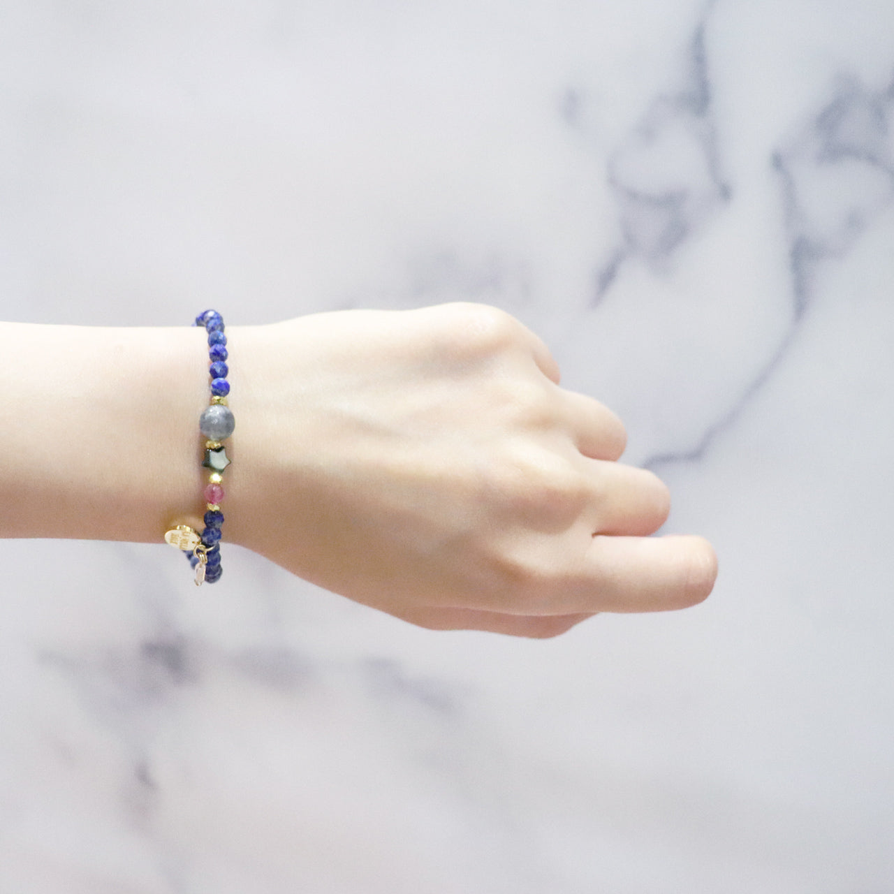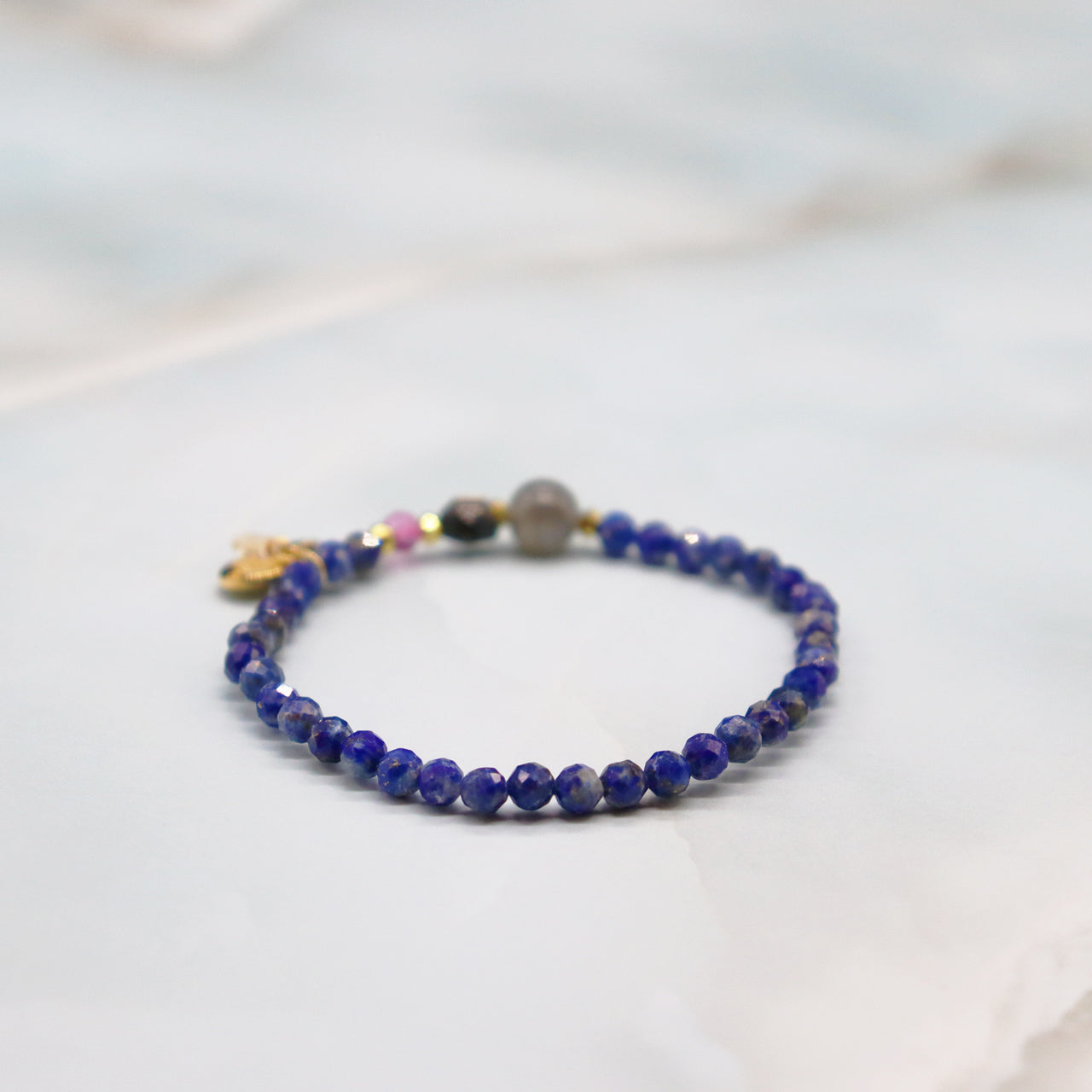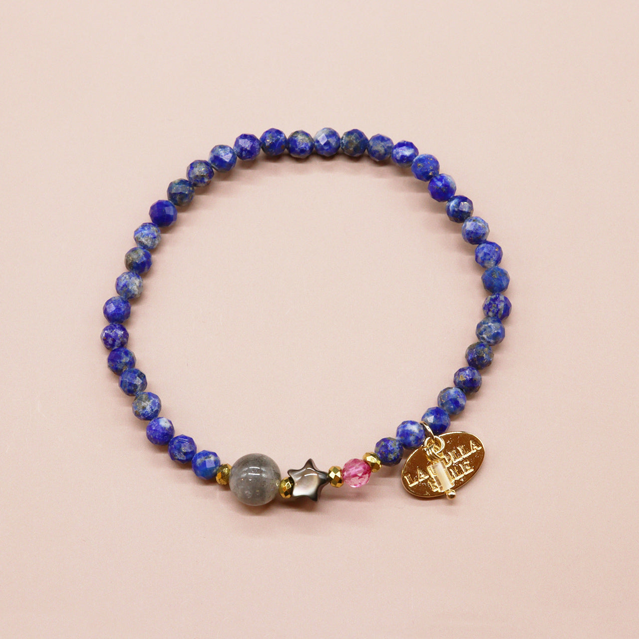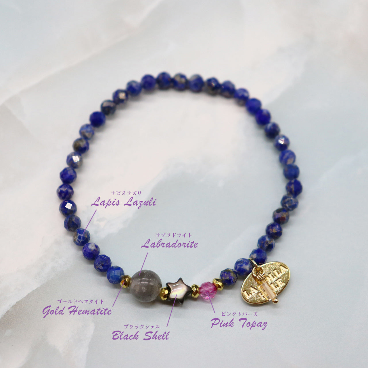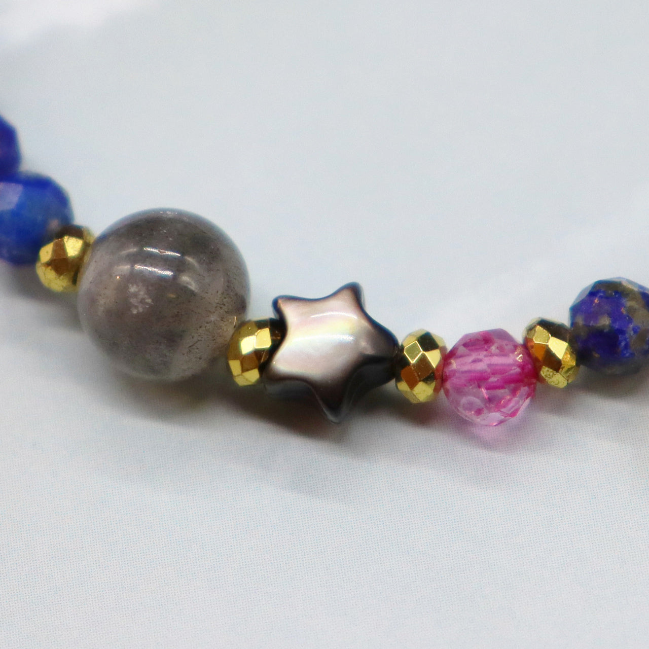 【Starry Sky Fragment】ラピスラズリ×ラブラドライト×ブラックシェル×ピンクトパーズ ブレスレット