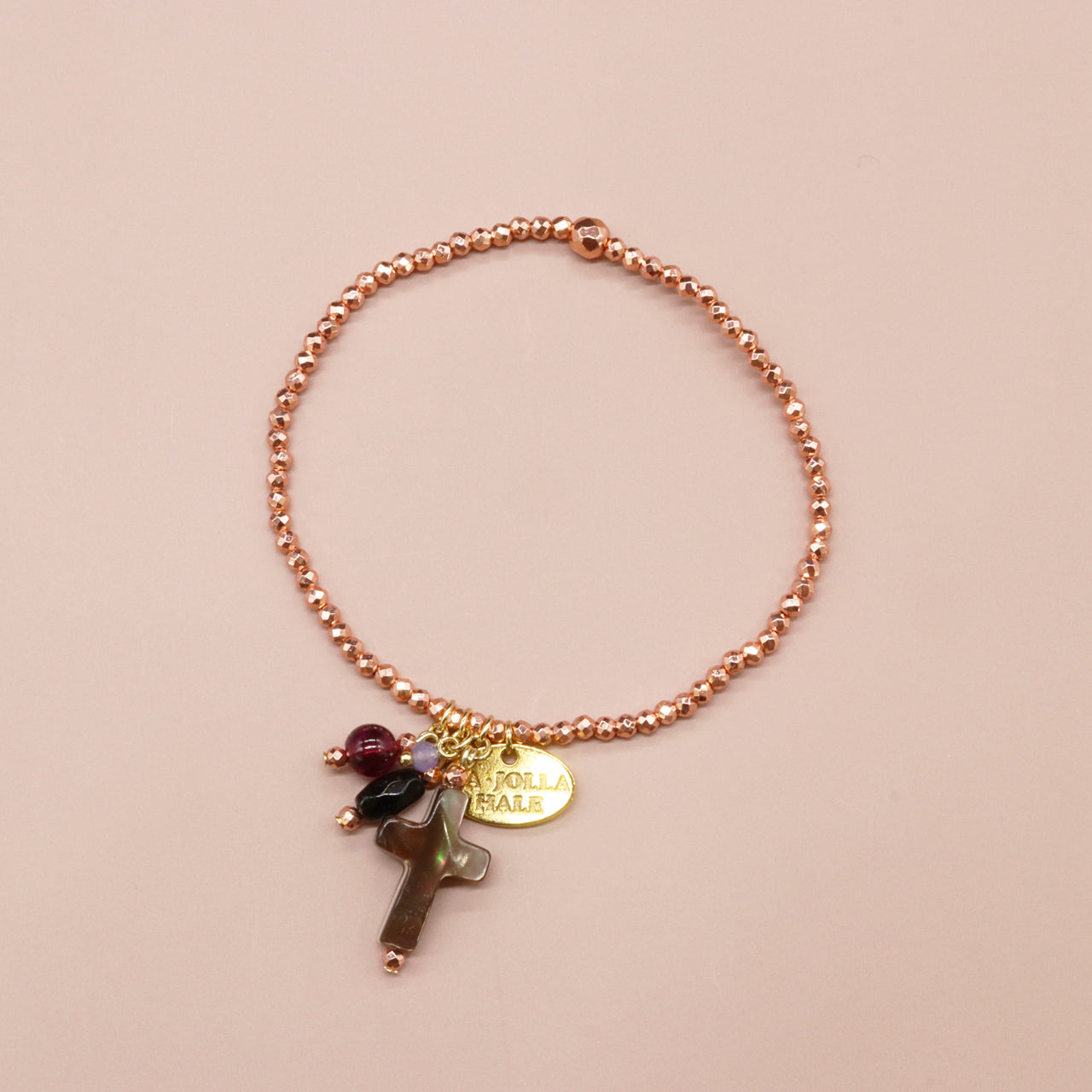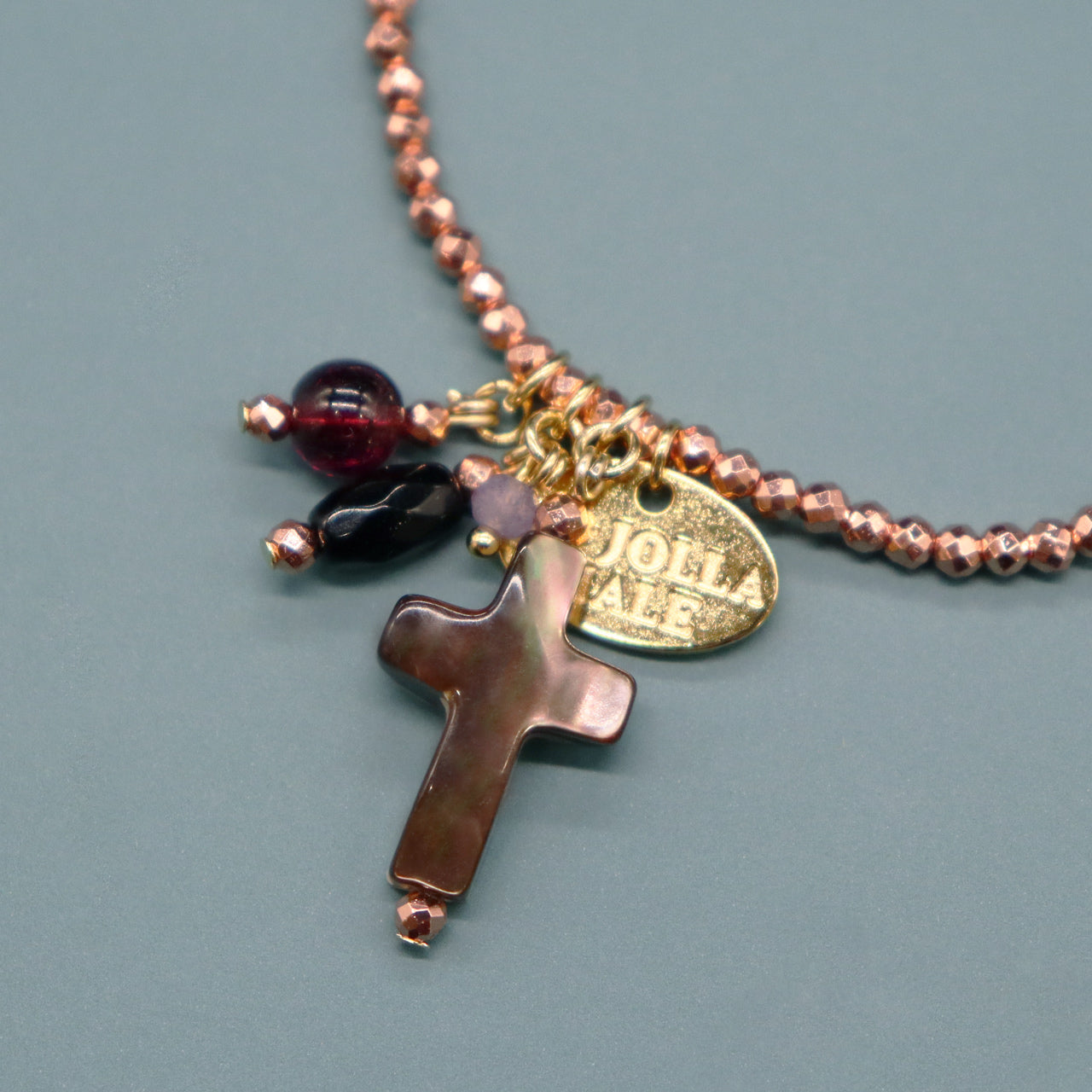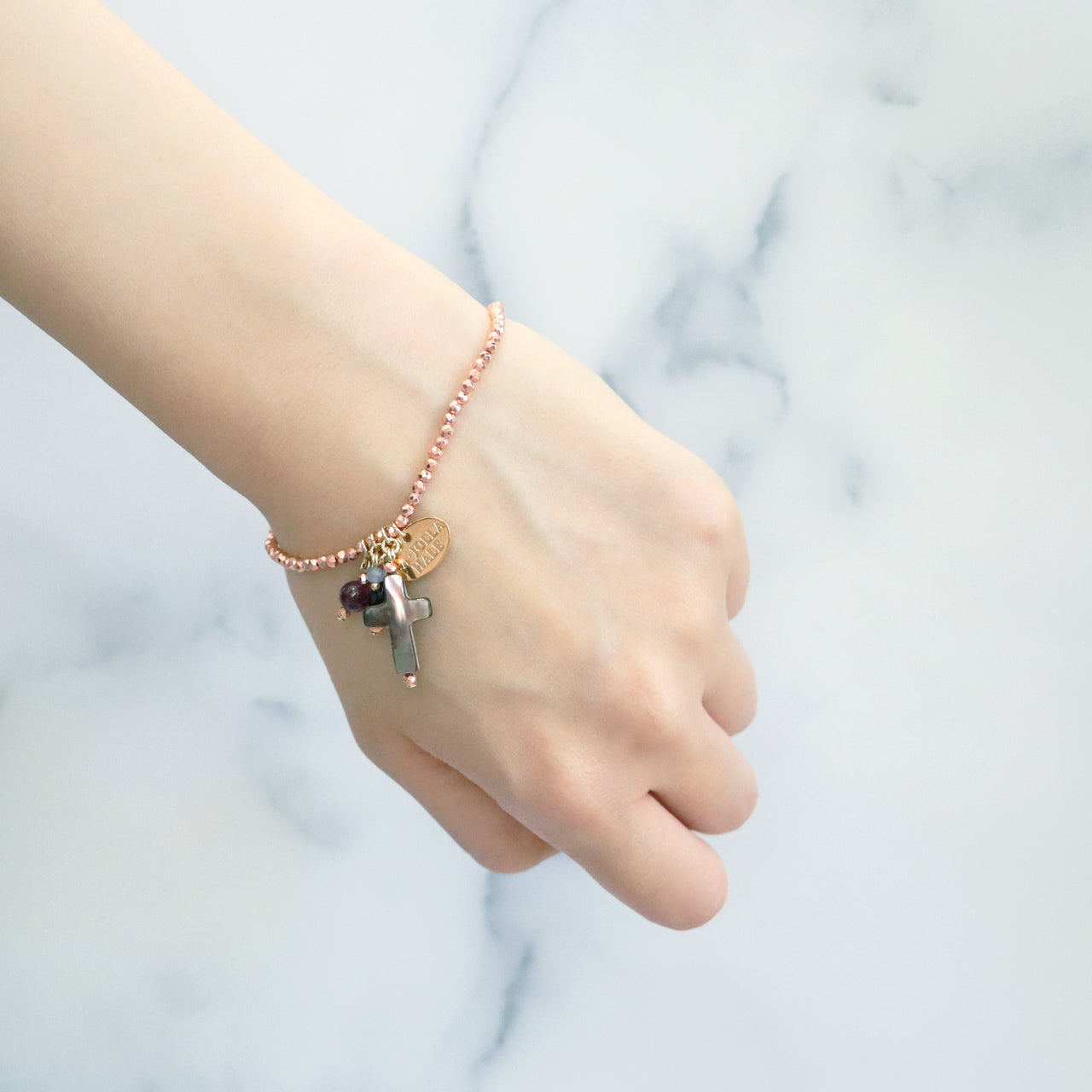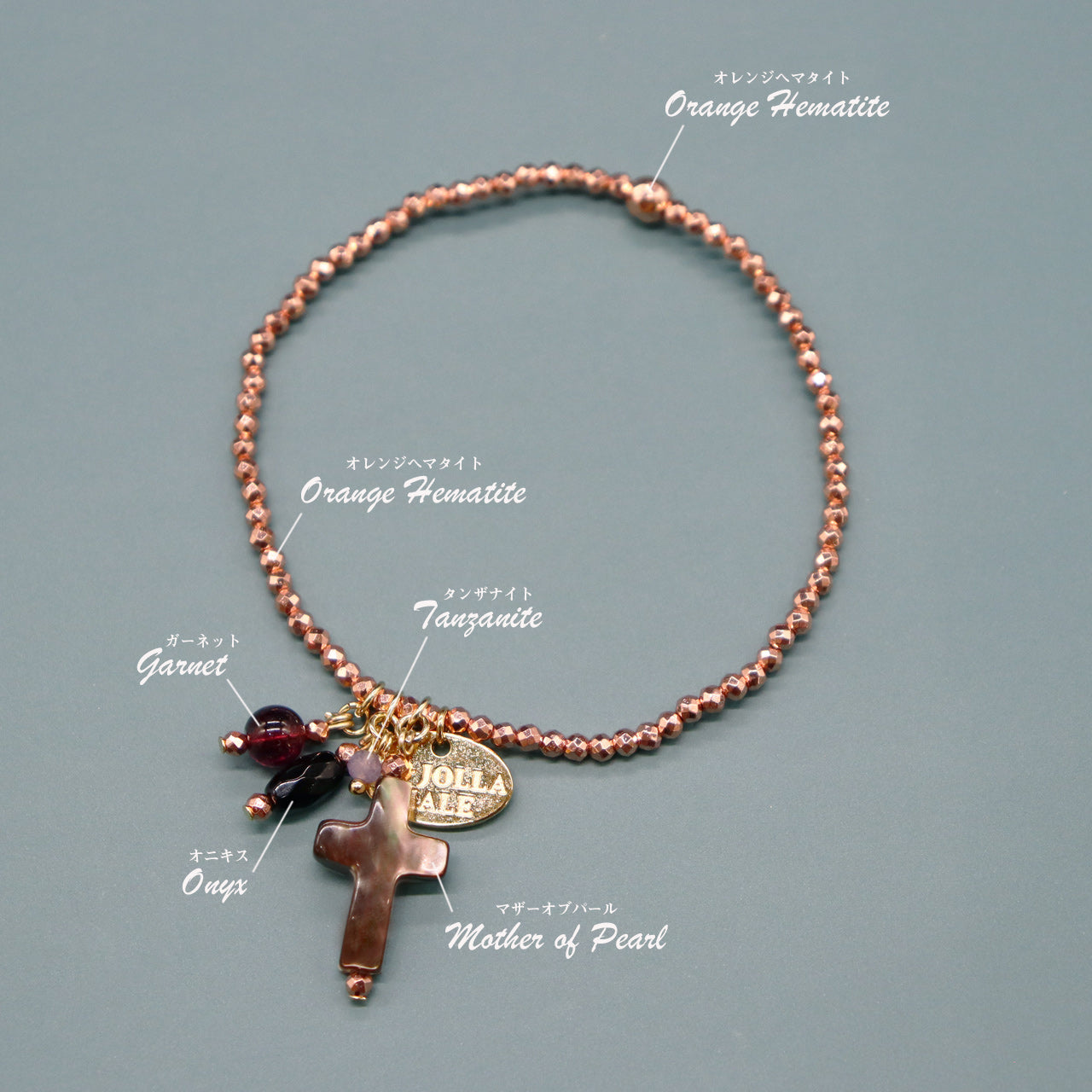 【・MA・YO・KE・】オレンジヘマタイト×マザーオブパール×オニキス×ガーネット ブレスレット