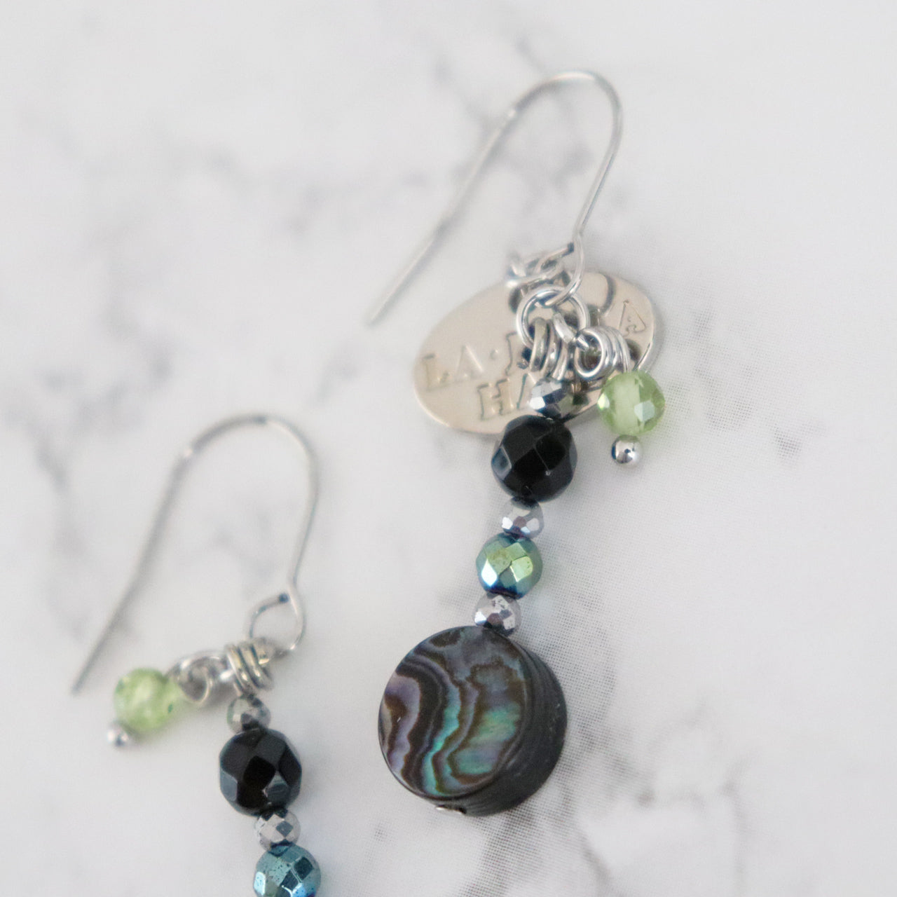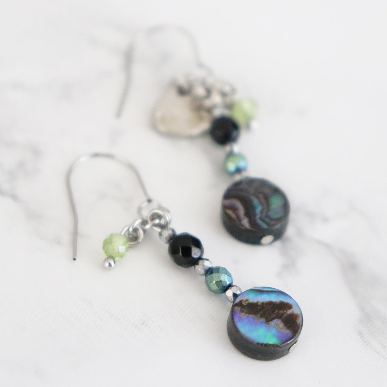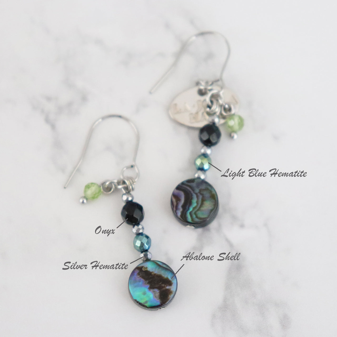 アバロニシェル×オニキス×ライトブルーヘマタイト ピアス
