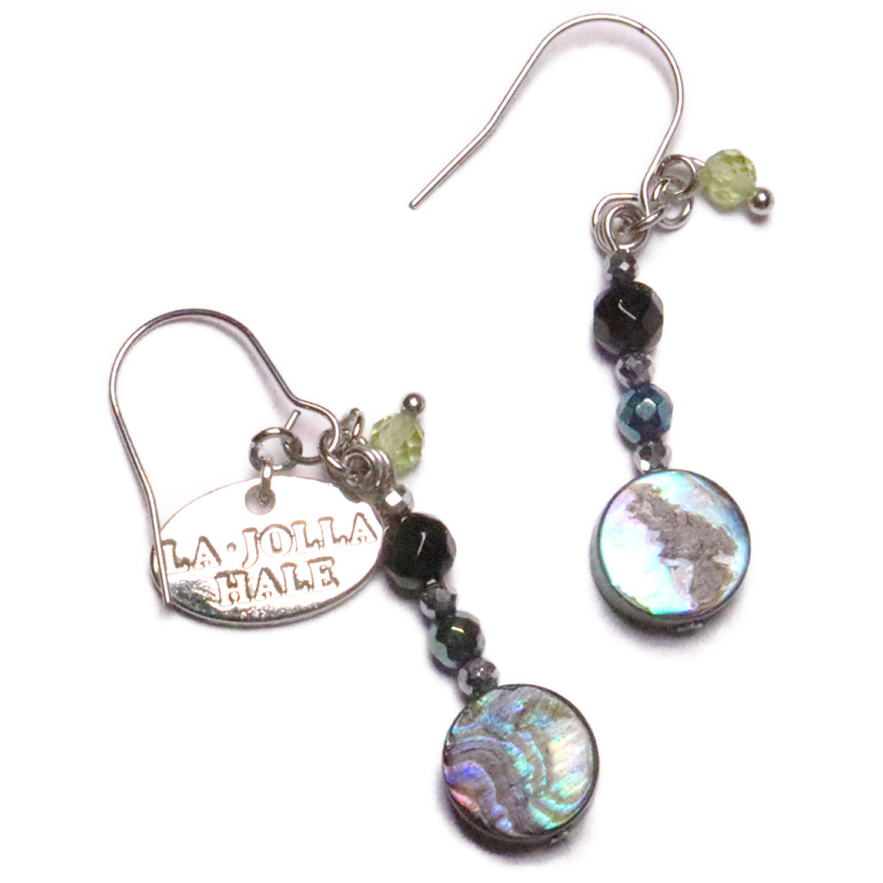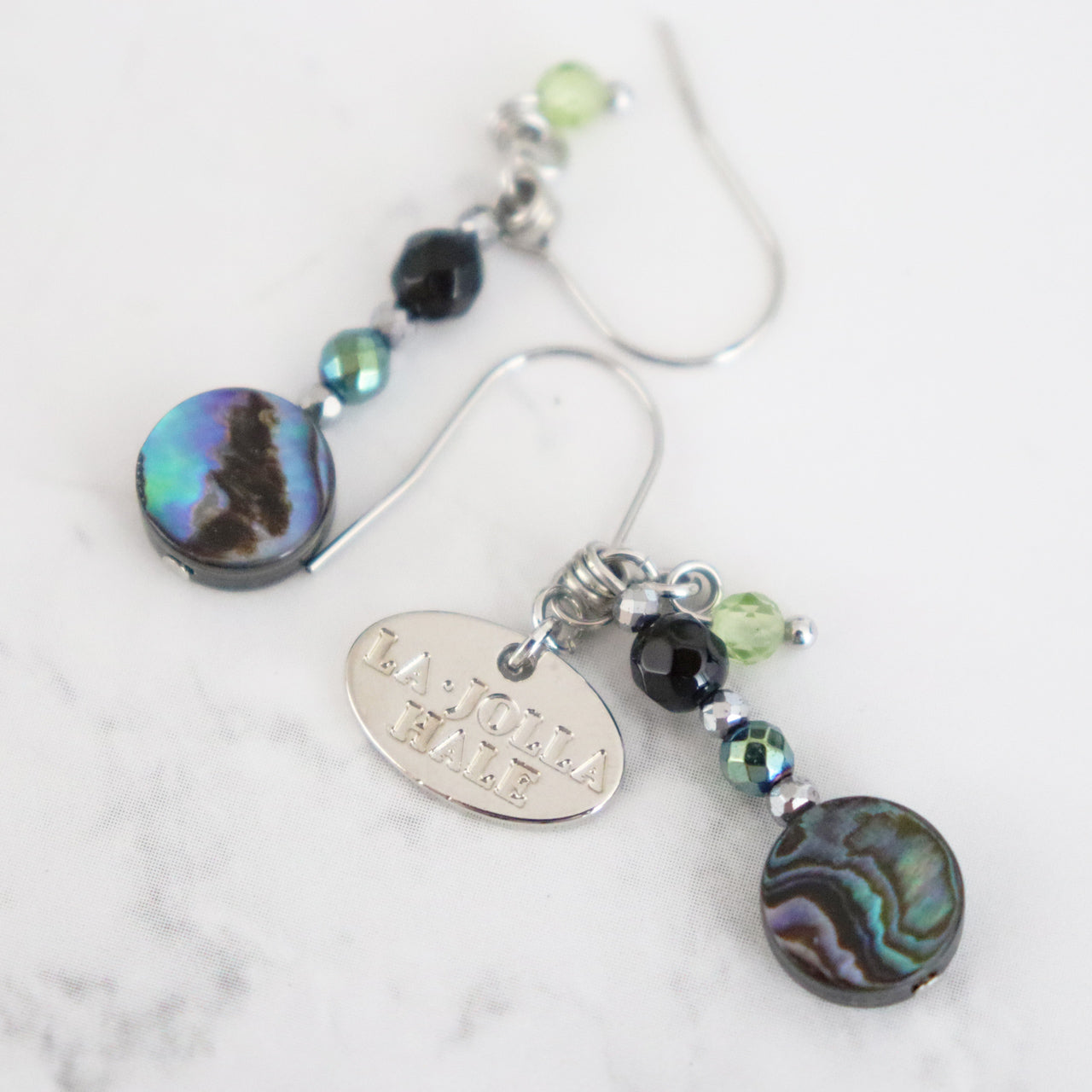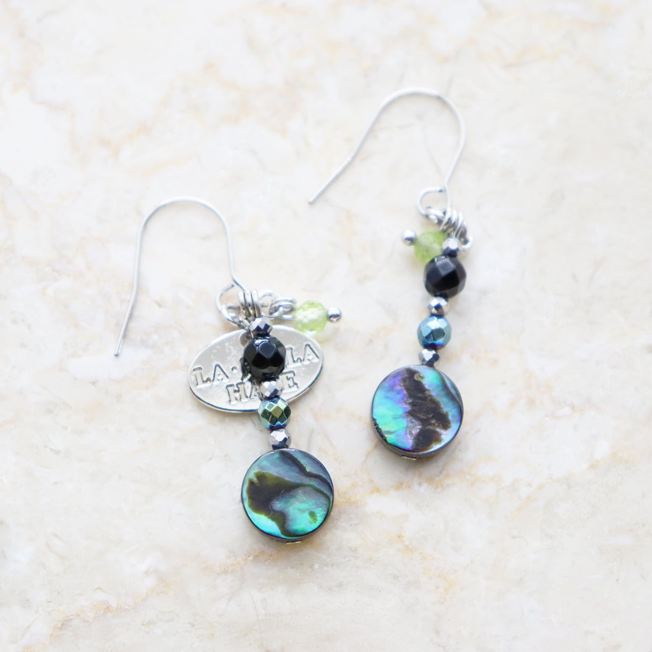アバロニシェル×オニキス×ライトブルーヘマタイト ピアス