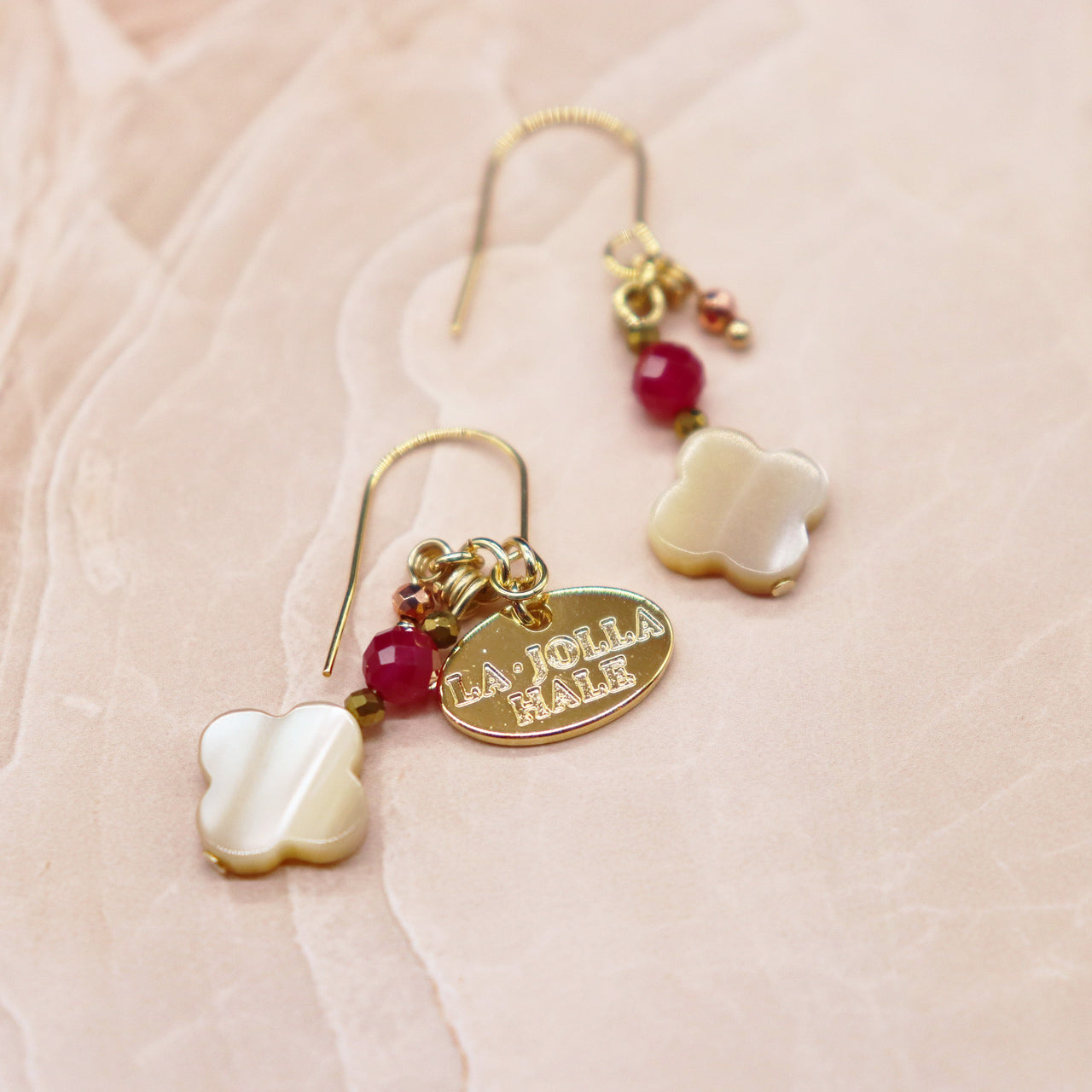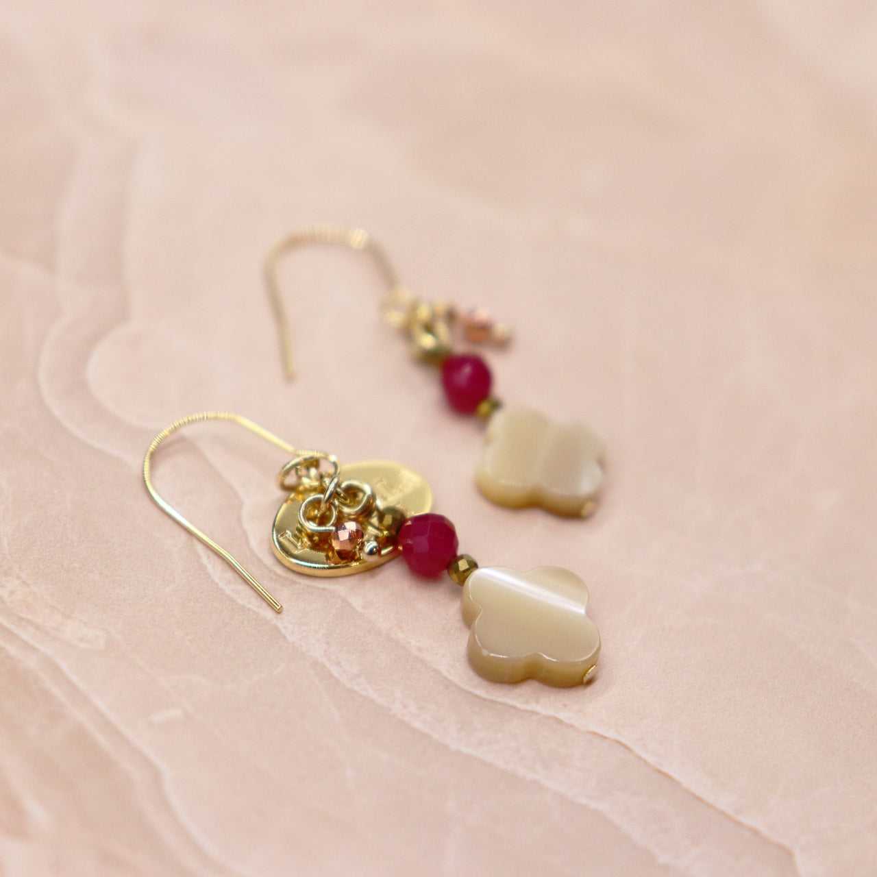 【Flames of Crimson】人工ルビー×マザーオブパール ピアス