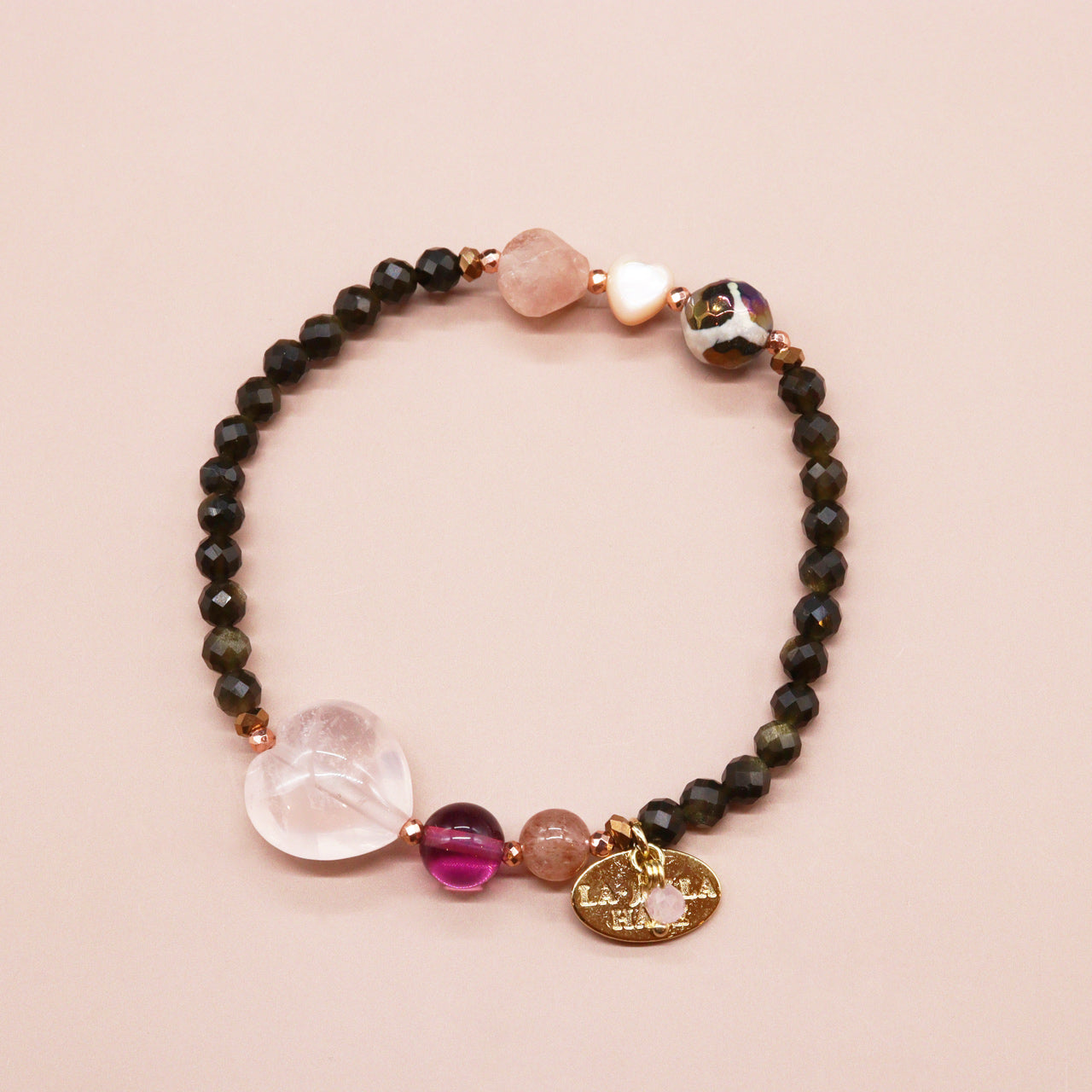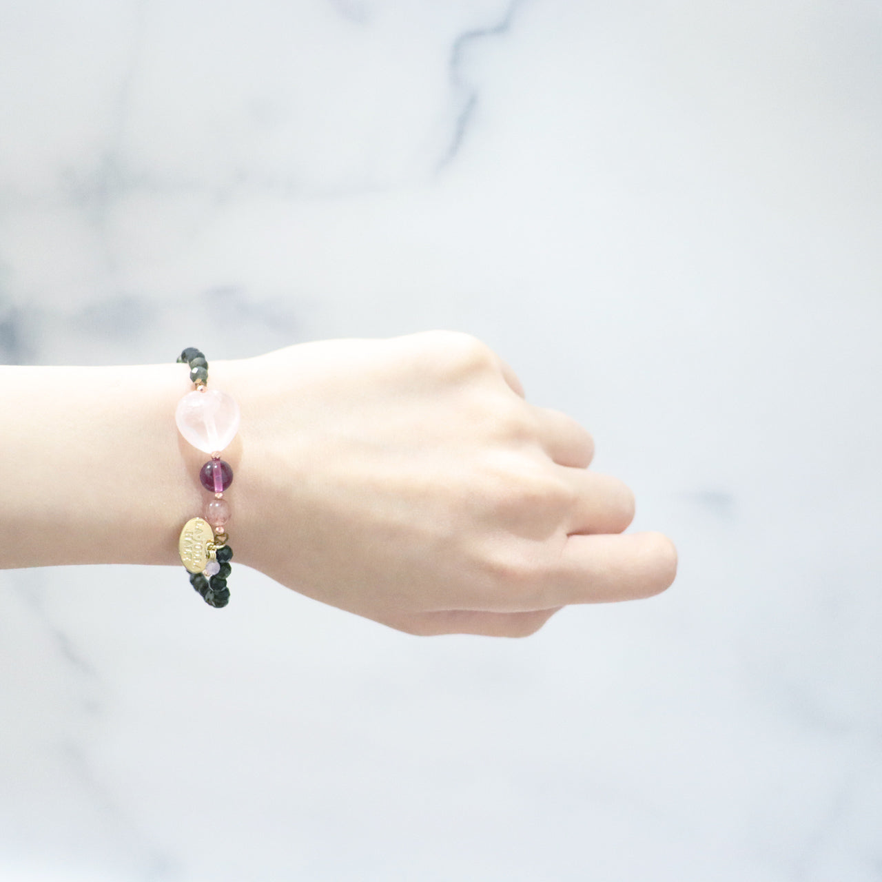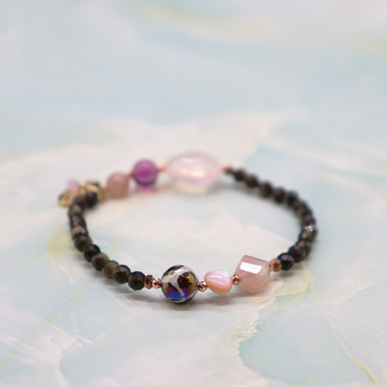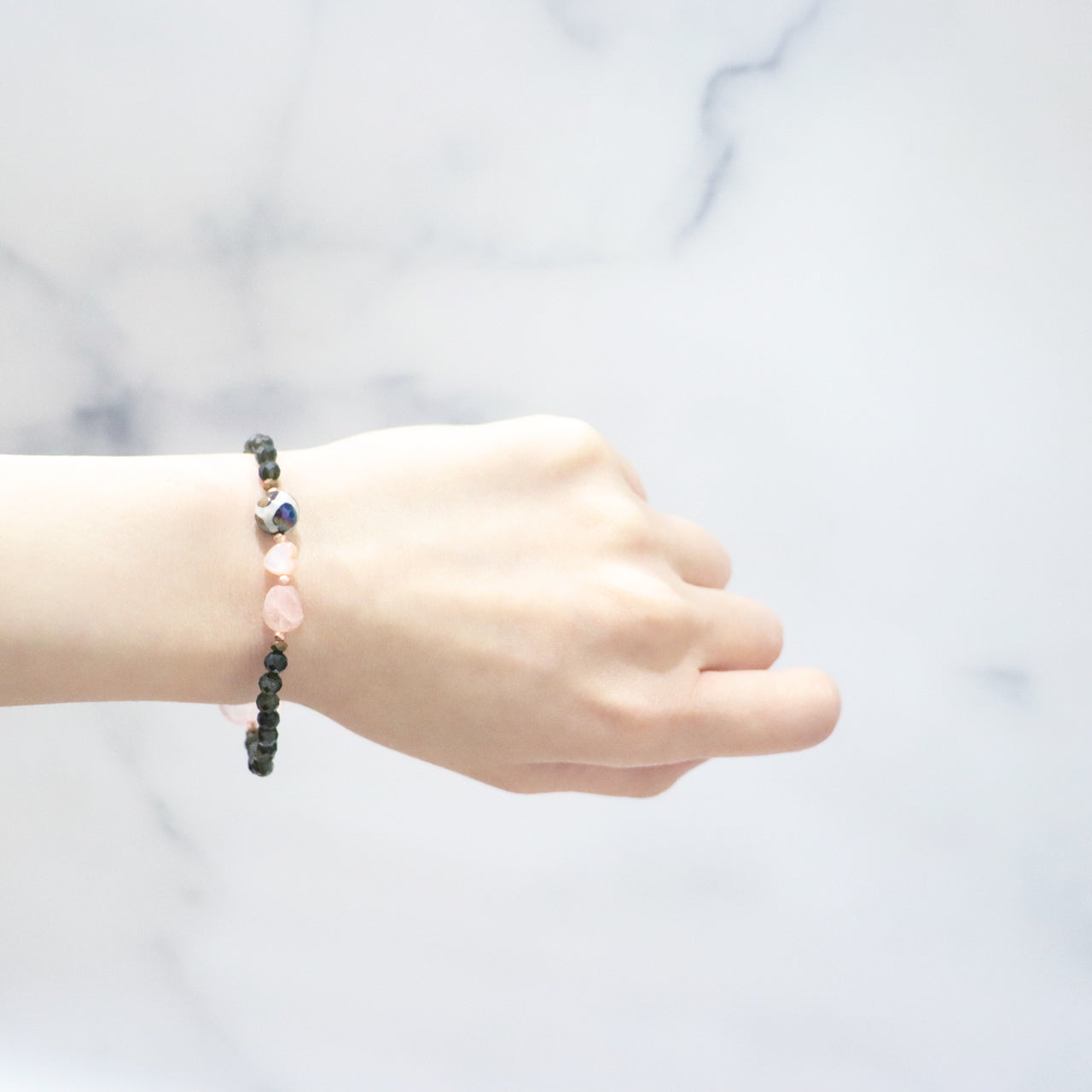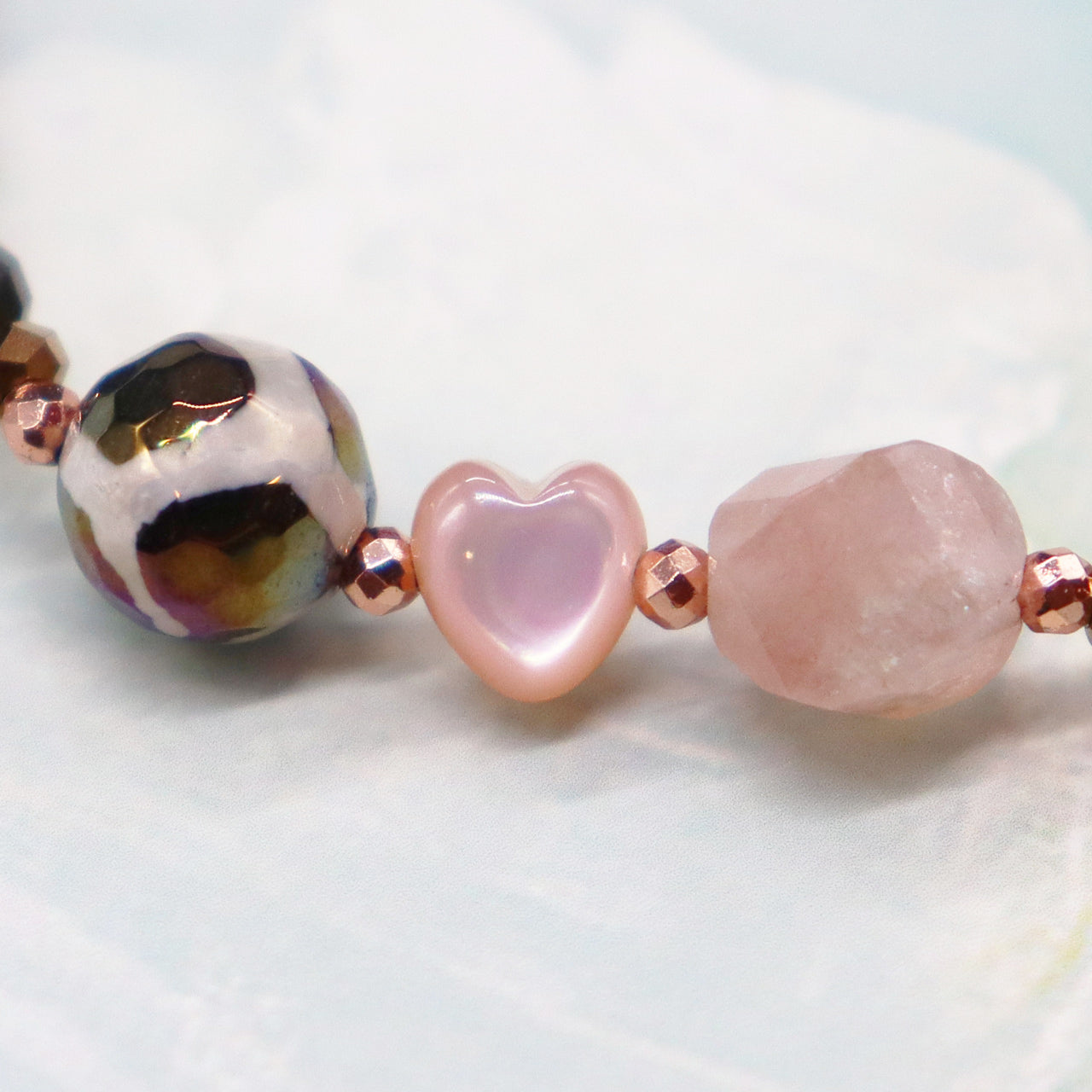 【Longing for Jaipur】亀甲天珠×ローズクォーツ×ピンクアベンチュリン ブレスレット