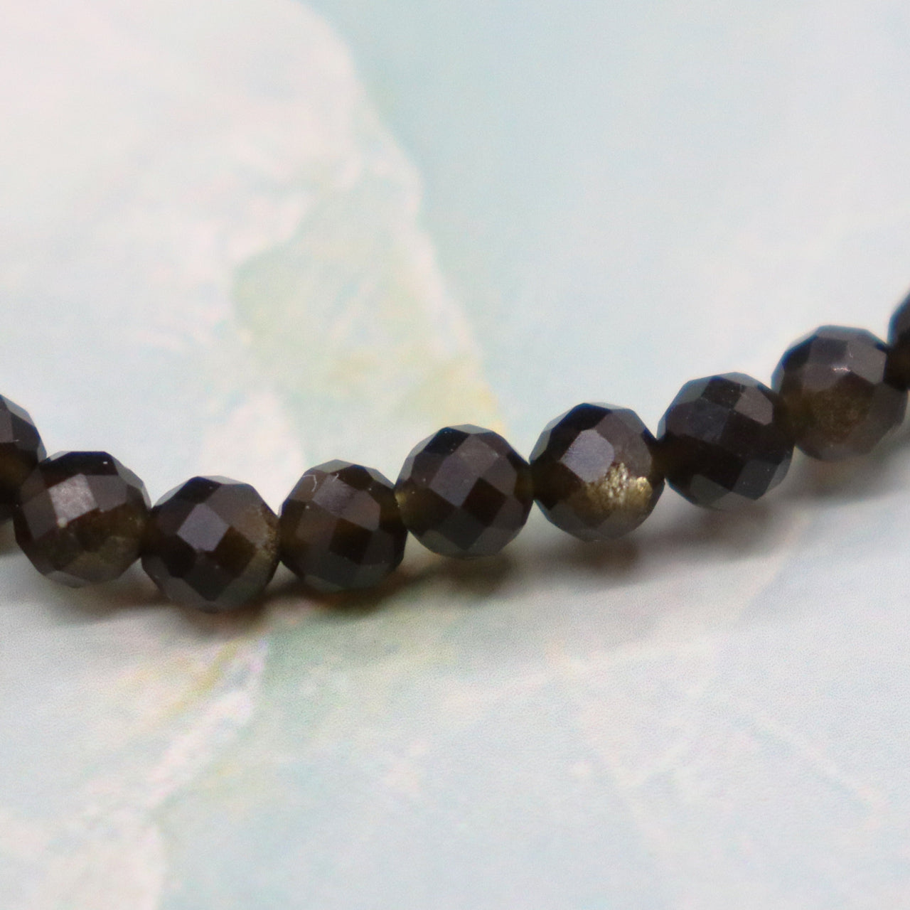 火山活動により生成される天然ガラスとして有名なオブシディアン(黒曜石)。ゴールドシーンオブシディアンは光の角度によってゴールドの光が浮かび上がるタイプのオブシディアンで、感情や思念のエネルギーを倍加してくれるので自己実現のためのお守りに向いていると言われています。