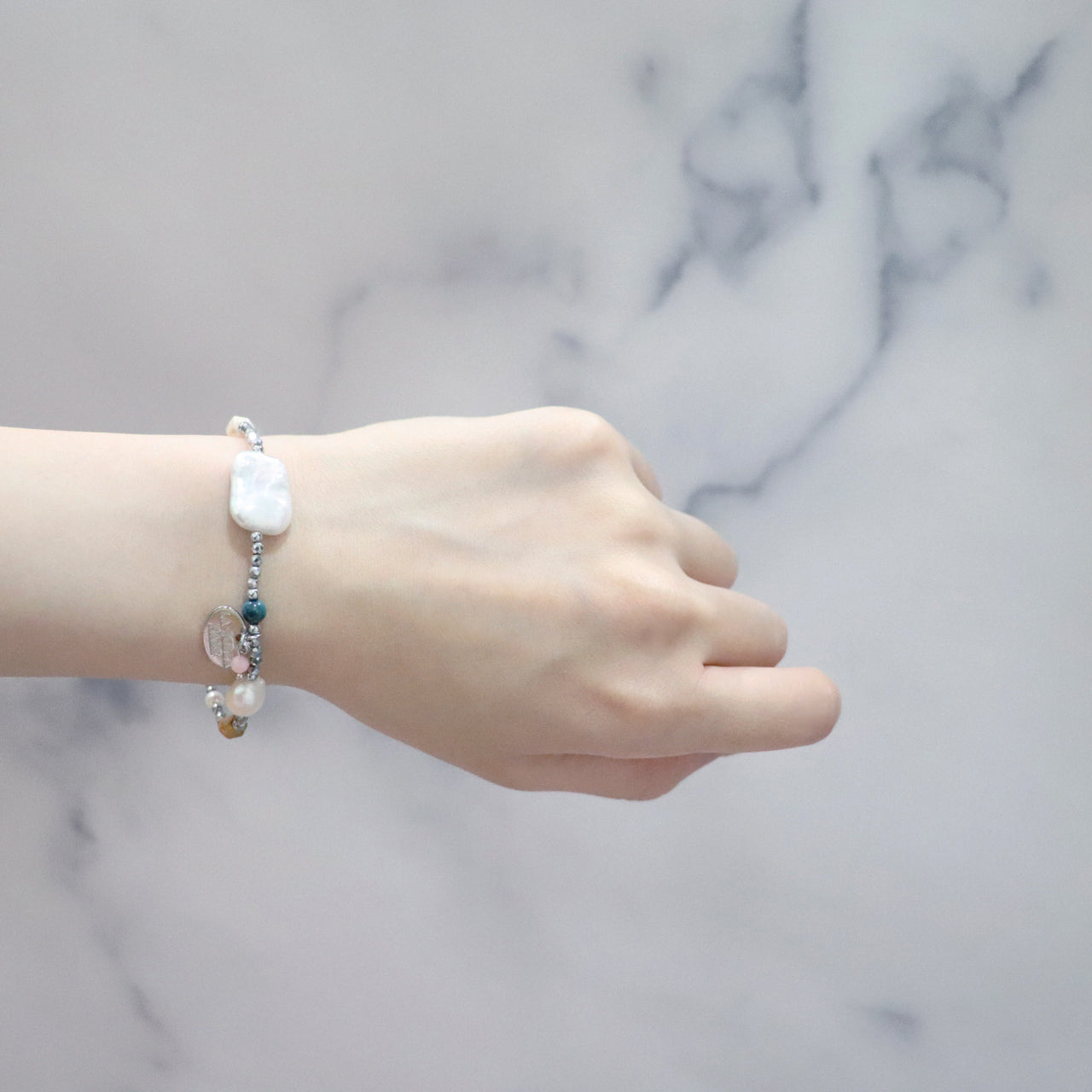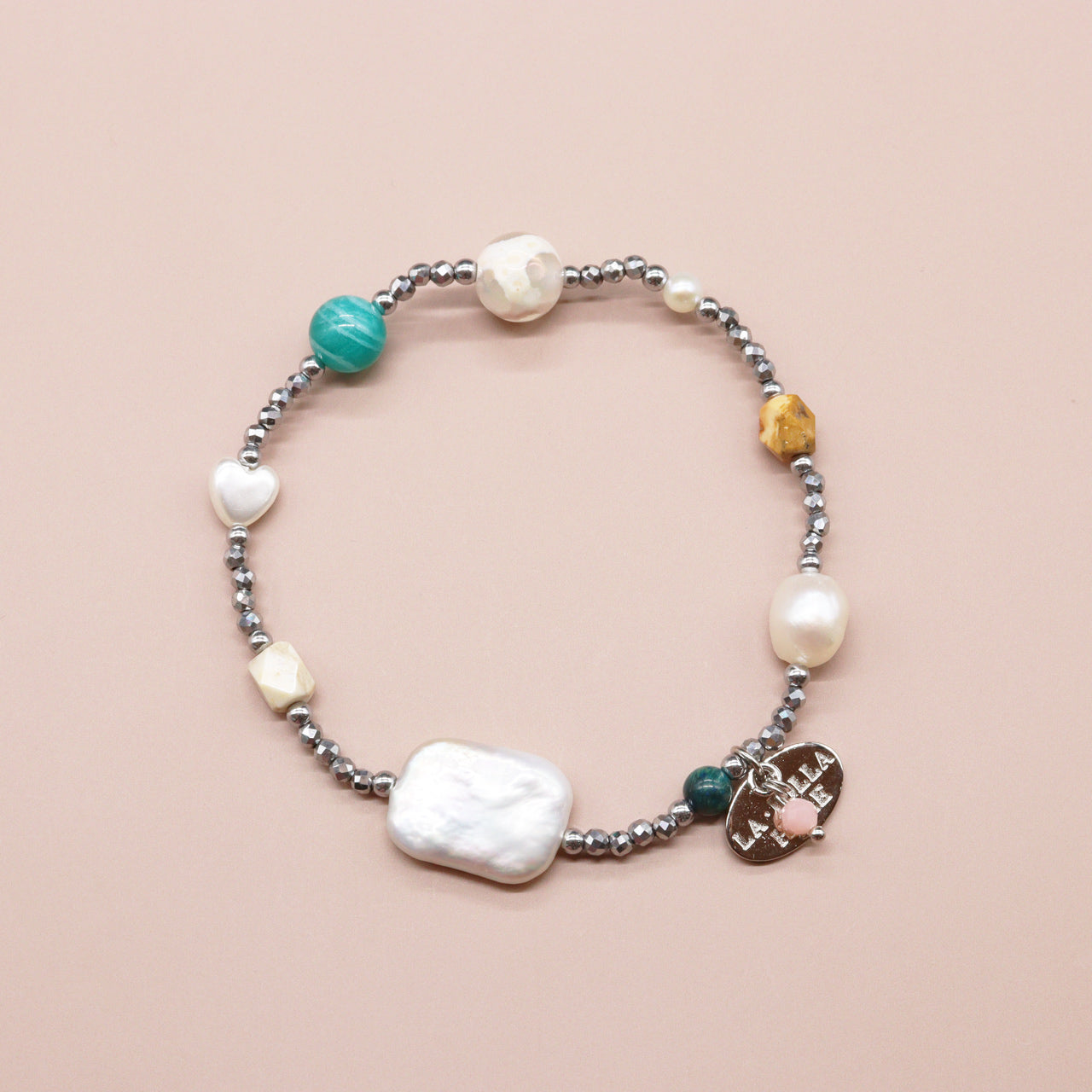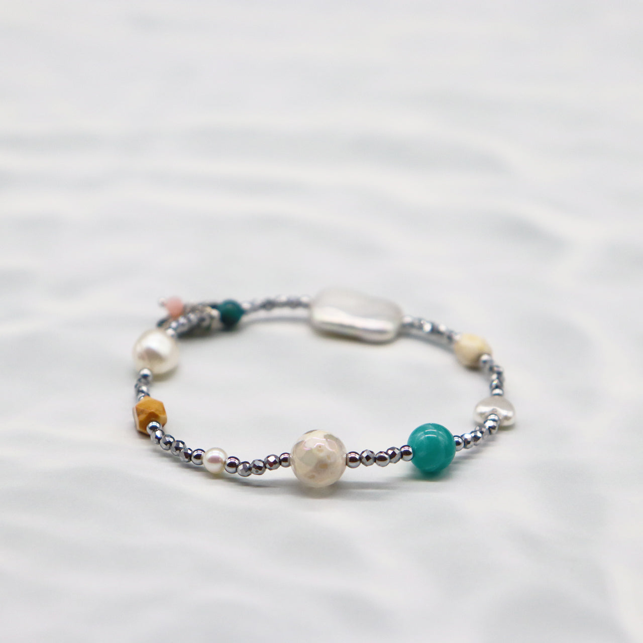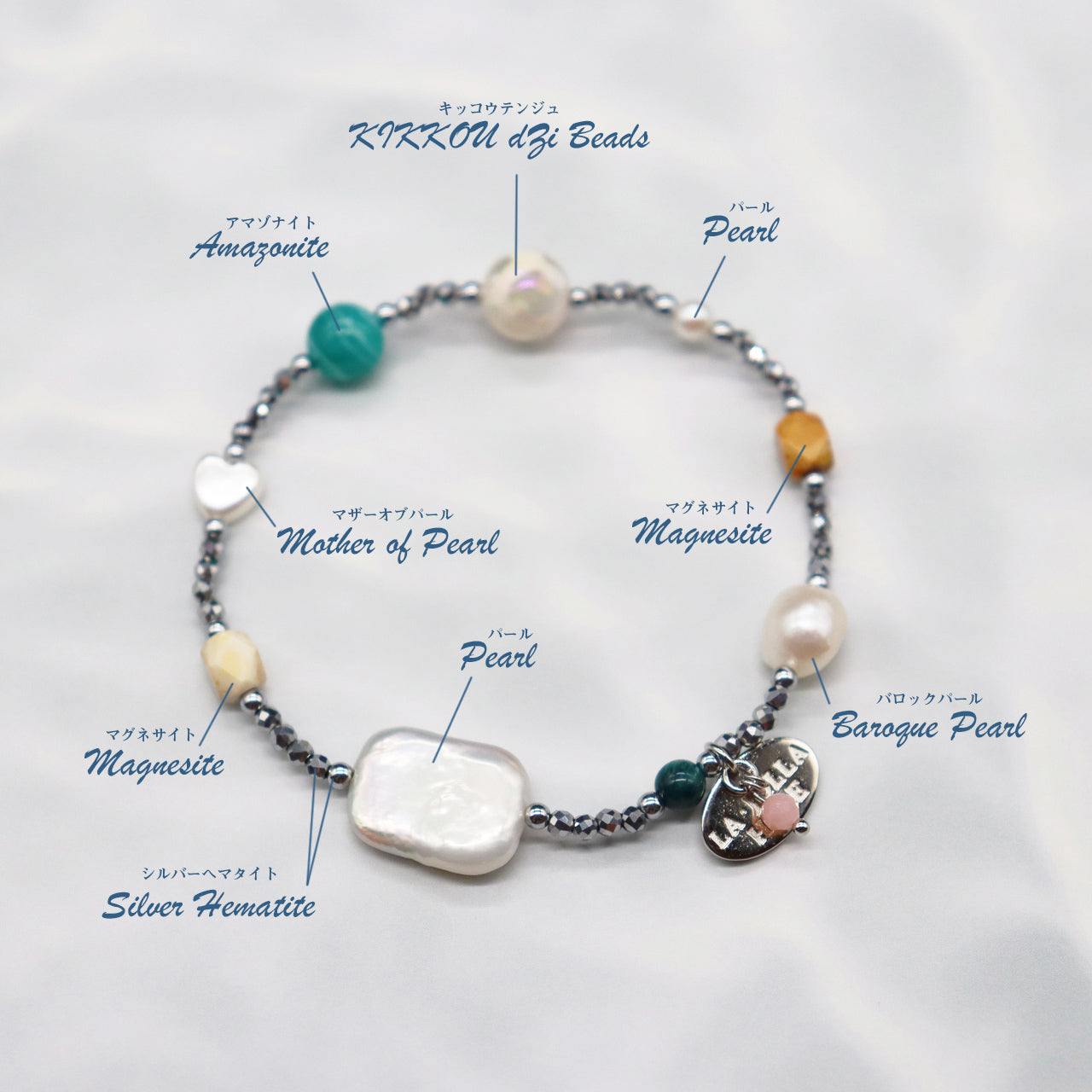 【Mermaid Teardrops】亀甲天珠×パール×バロックパール×アマゾナイト ブレスレット