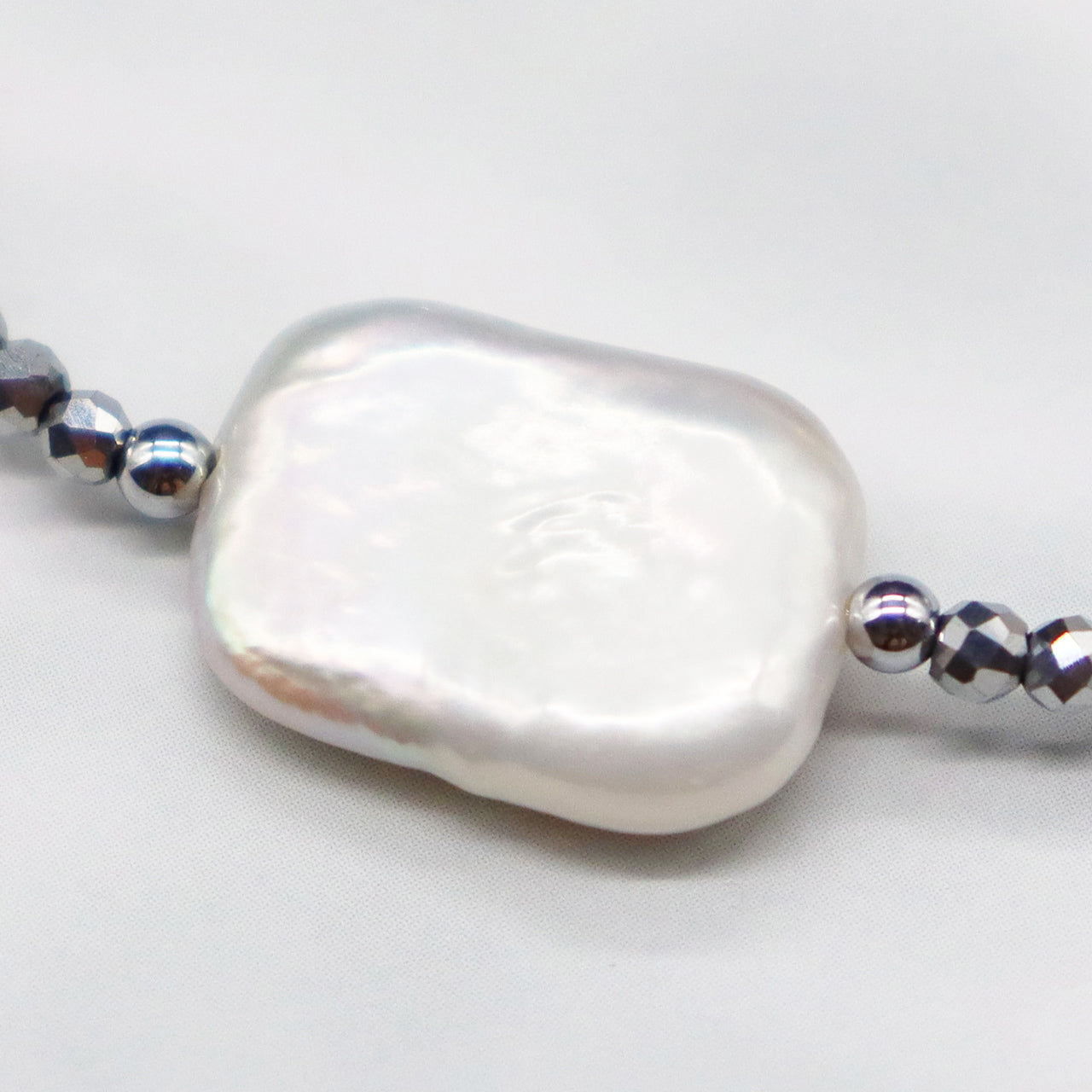 「貝パール」とはマザーオブパールをベースにパールのようなコーティングを施したもので、上品な光沢感があります。マザーオブパールは母性や親子愛を象徴する石と言われています。