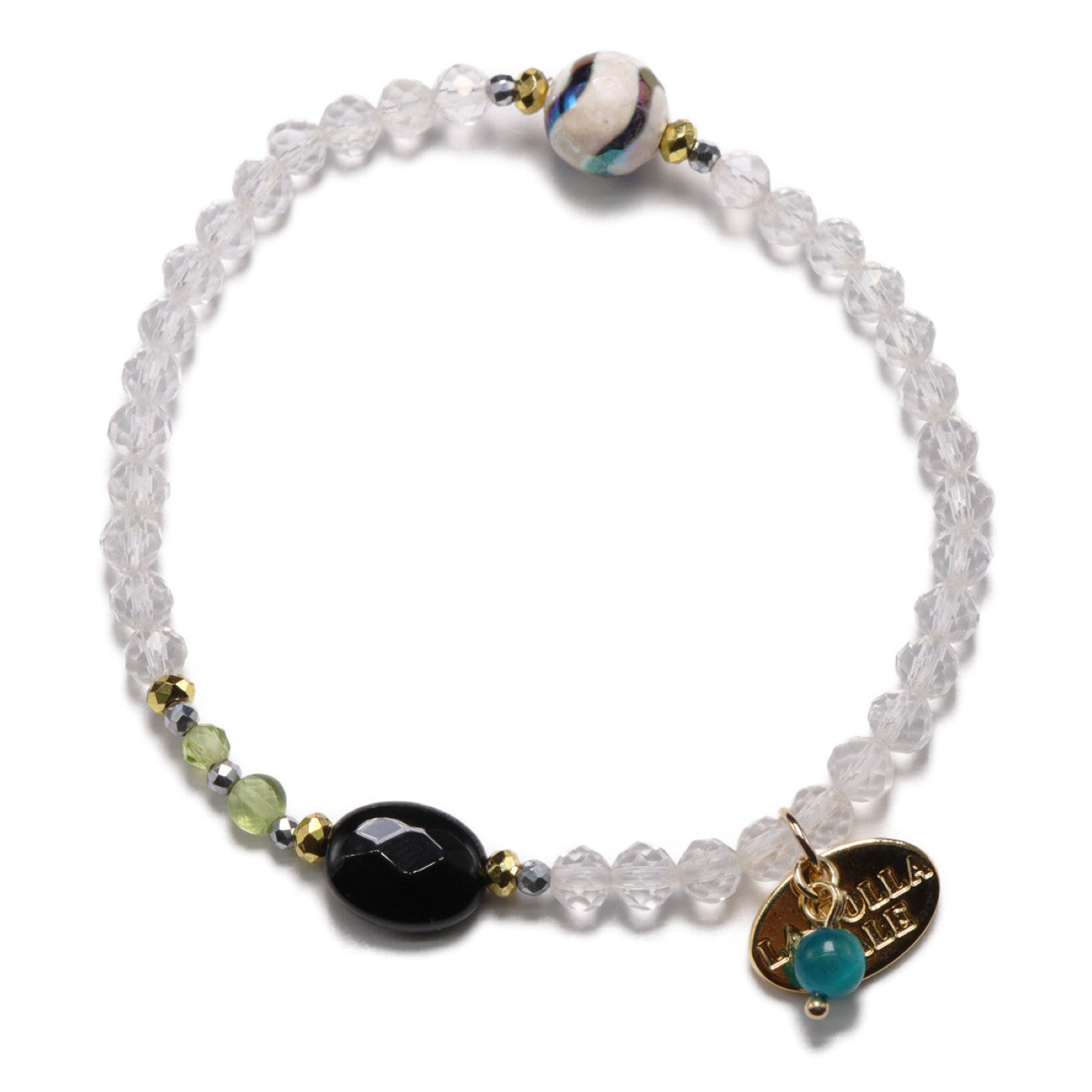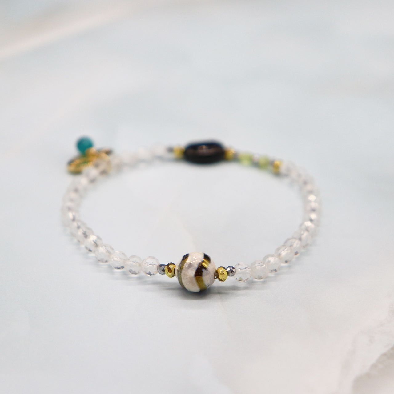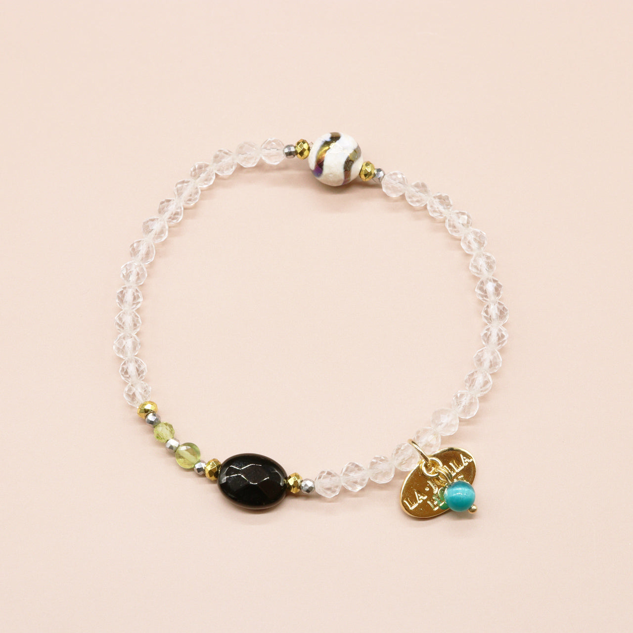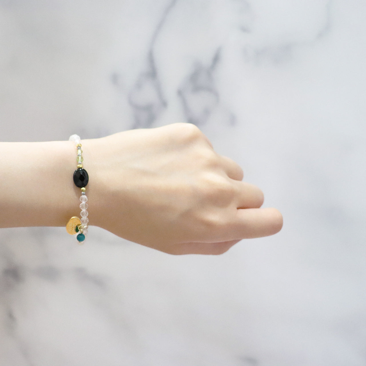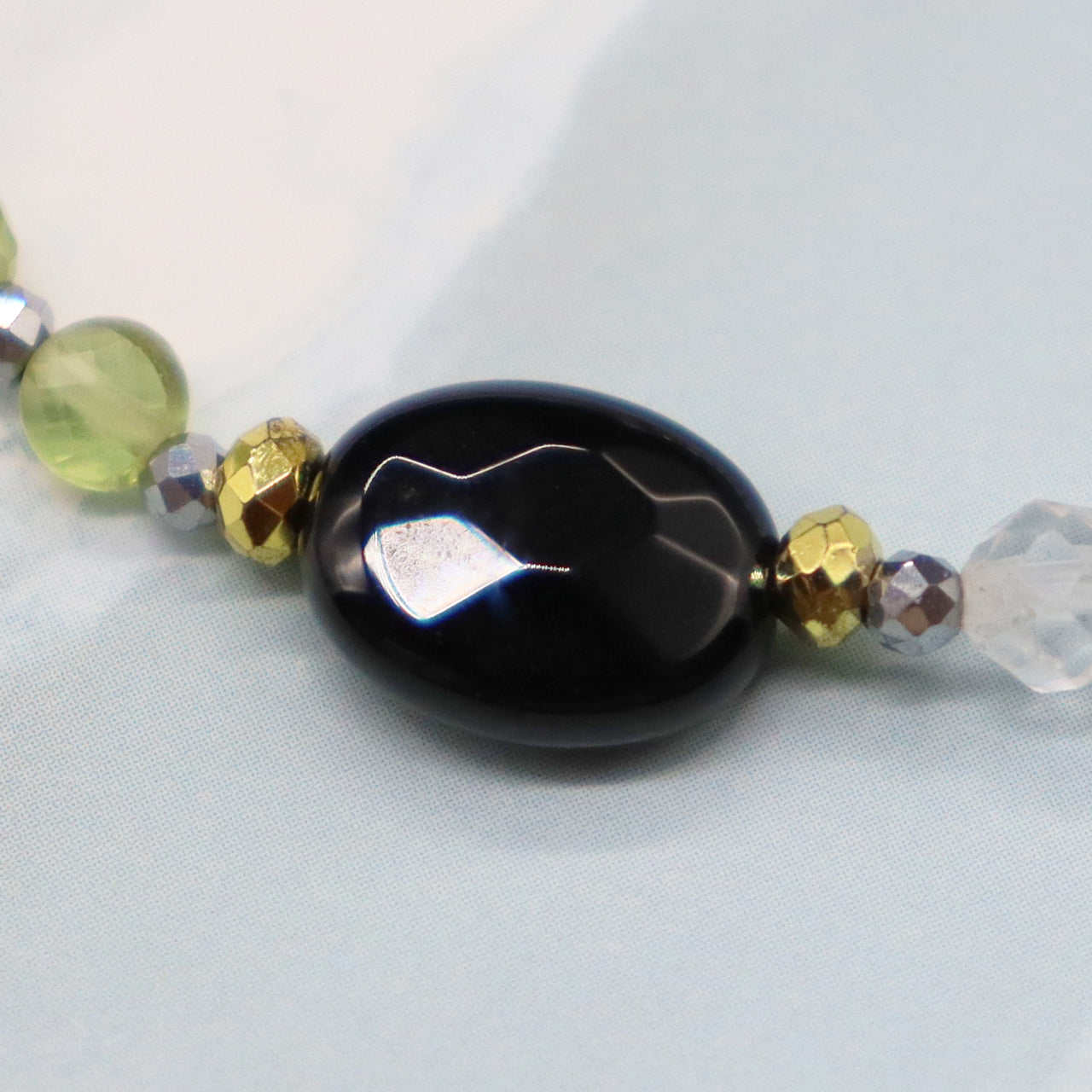 【Green Light Sunshine】水紋天珠×ペリドット×オニキス×水晶 ブレスレット